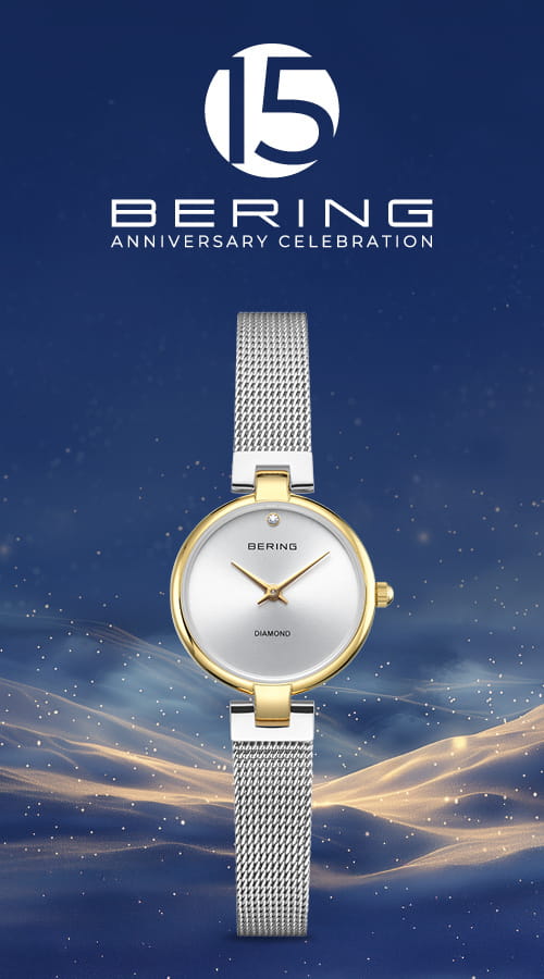 Seit 15 Jahren steht BERING für zeitloses Design, klare Linien und außergewöhnliche Handwerkskunst – inspiriert von der reinen Schönheit der Arktis. Zum Jubiläum präsentieren wir exklusive Sondereditionen: limitierte Uhren und Sets aus Uhr und passendem Armband, gefertigt mit höchster Präzision und Eleganz. Nur für kurze Zeit erhältlich, solange der Vorrat reicht.