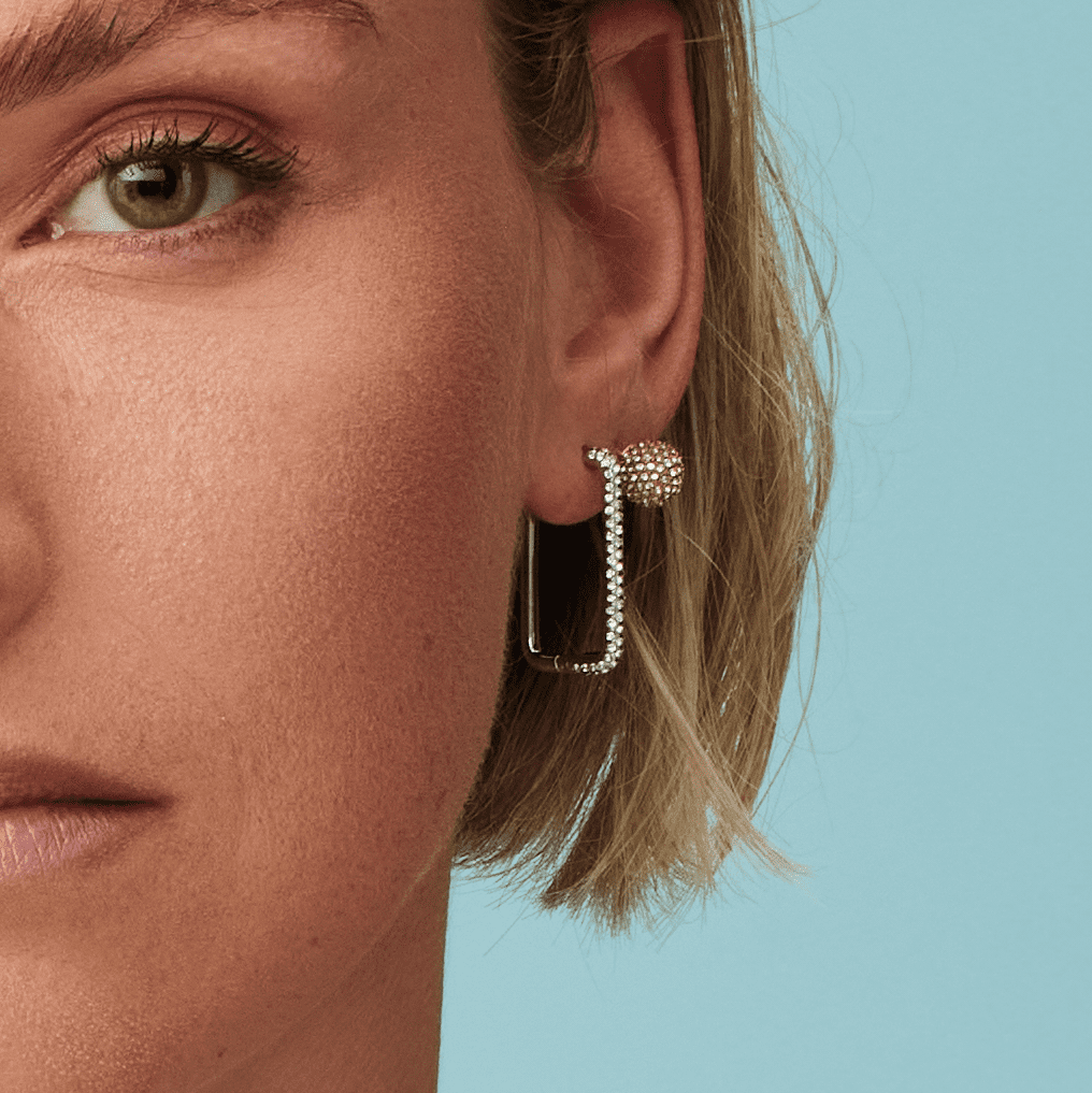 Modern, elegant und mit funkelndem Finish – diese rechteckigen Pavé-Ohrringe in silber... mehr