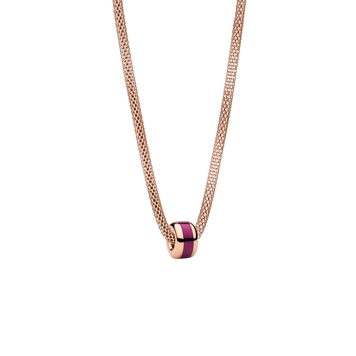 Der passende Charm bringt einen spannenden Kontrast ins Spiel: Die glatte, roségoldene Edelstahloberfläche wird durch ein tiefes, leuchtendes Violett durchbrochen. Mit nur 5,5 mm Breite wirkt der Charm filigran und setzt genau die richtige Akzentuierung. Ein Design, das Haltung zeigt; zurückhaltend im Ton, aber stark in der Wirkung.