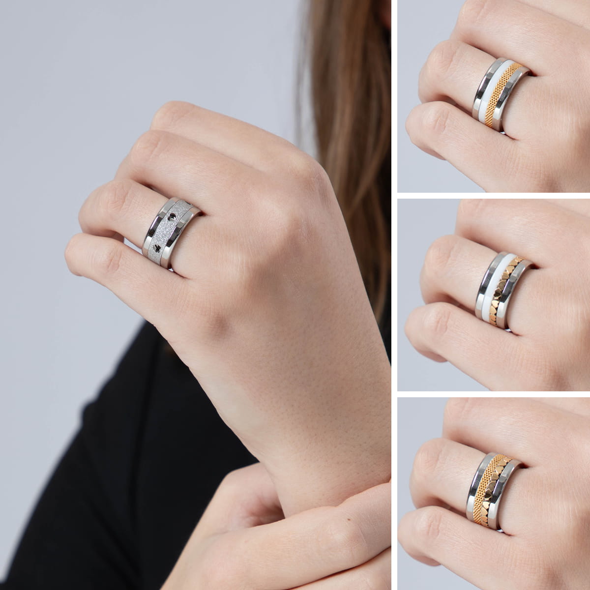 Udskift blot inderringene og kombinér dem igen og igen med din yderring. På et øjeblik skaber du nye looks – helt uden besvær. Og det bedste af det hele: Med vores ringsæt får du en ring som gave fra os.