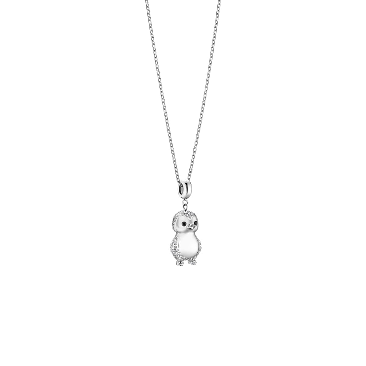 PolarPenguinSet-1 er et charmerende smykke, der kombinerer vinterens legende stemning med elegant design. Det søde pingvinvedhæng i sølvlook er udsmykket med funklende krystaller, som giver et glitrende og stilfuldt udtryk.