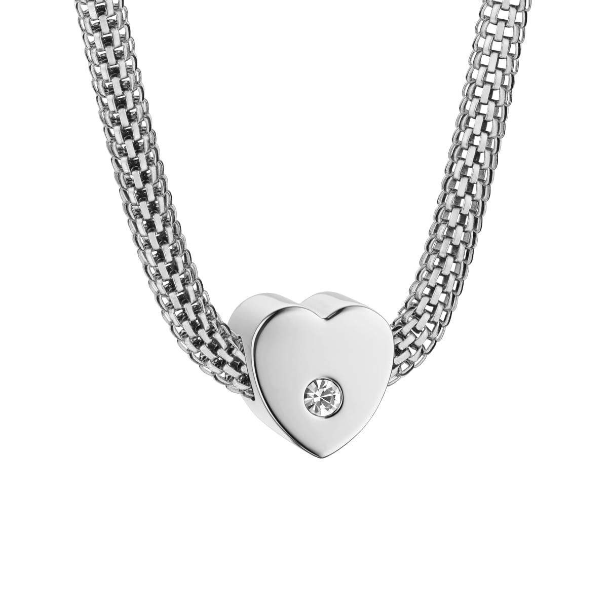 El collar con colgante de corazón atrae la atención. El cristal tallado confiere a la pieza de joyería elegancia y glamour. El aspecto lúdico armoniza perfectamente con la colección de relojes BERING, rematando el concepto general a la perfección.