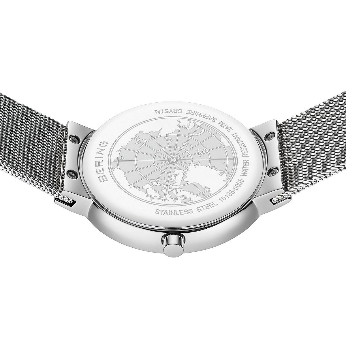 Las correas milanesas de BERING son fácilmente ajustables. Inserta un destornillador pequeño o una herramienta similar en la hebilla, como se muestra en la imagen. Levanta la hebilla y colócala en la posición deseada. Asegúrate de que la hebilla encaja en una de los agujeros de la parte posterior de la correa. La correa se puede personalizar completamente según tus necesidades por un relojero.