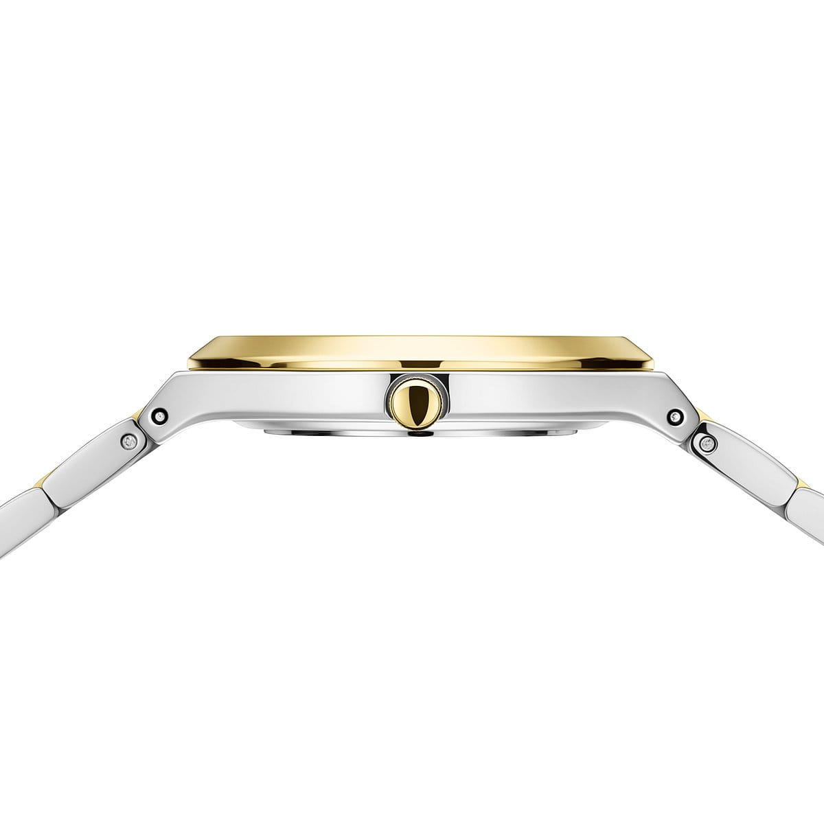 El reloj de mujer BERING 19932-710 combina la pureza del diseño escandinavo con un toque de lujo dorado. Su elegante composición bicolor, con acero inoxidable plateado y detalles en dorado, crea un contraste armonioso y sofisticado. La esfera plateada con acabado satinado, acompañada de índices finos y números romanos, refleja una elegancia atemporal.