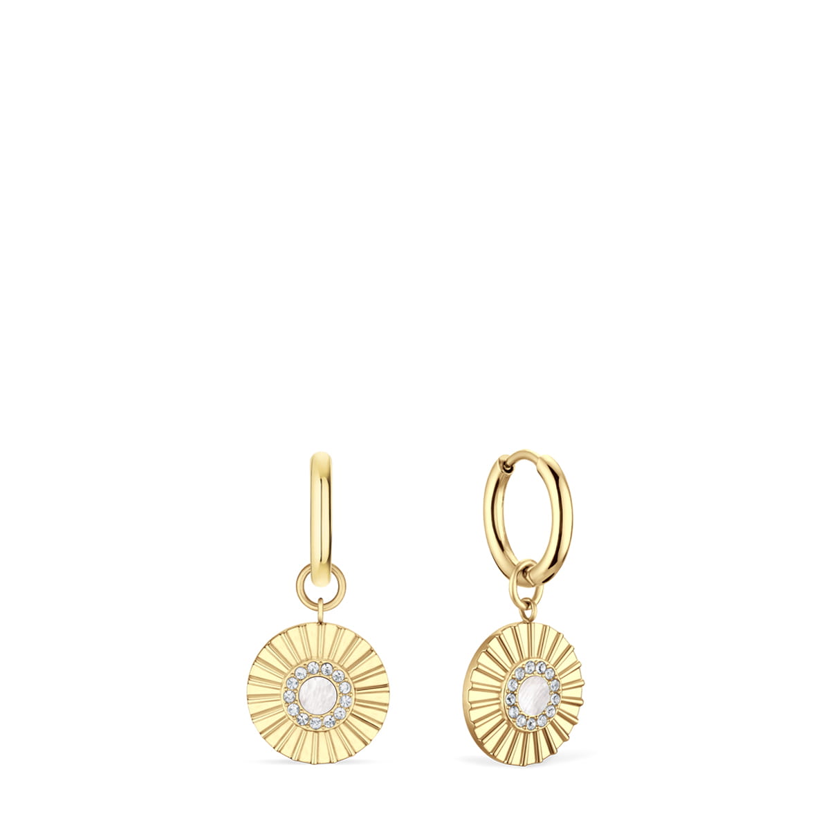 The warm gold-tone stainless steel contrasts beautifully with the icy brilliance of the stones. A fine chain and removable pendant earrings make the set easy to style – together or apart.