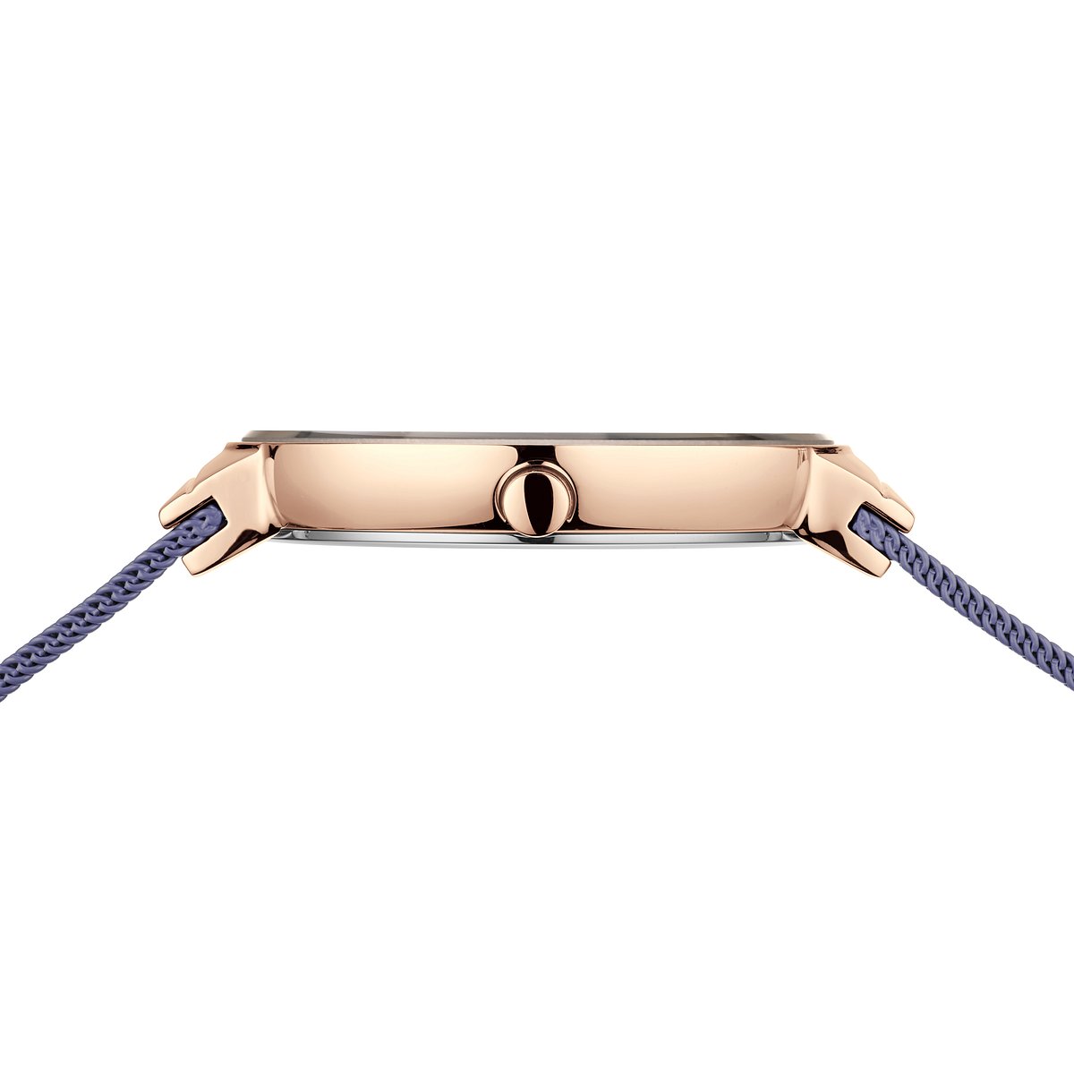Sapphire crystal, rose gold-tone stainless steel, lavender Milanese strap, Swarovski crystal hour markers, quartz movement – clean lines, soft tones, timeless beauty.