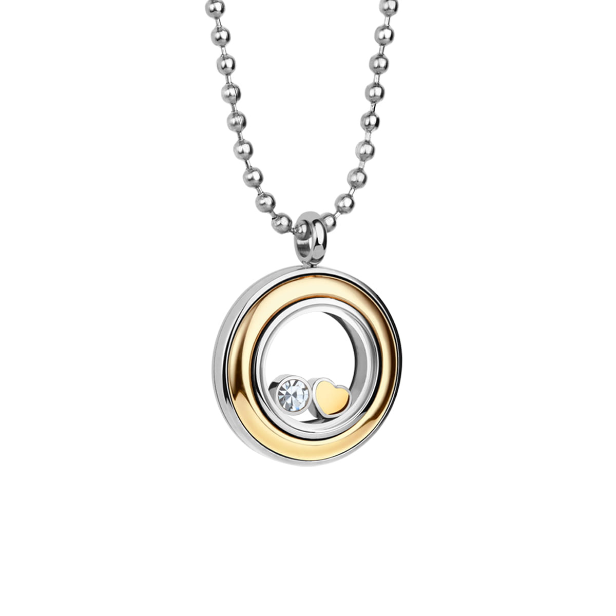 This necklace from the Arctic Symphony collection embodies perfect harmony between elegance and contrast. At its centre is a stylised circle – the timeless symbol of infinity and wholeness – with a two-tone finish: polished stainless steel paired with a delicate gold-coloured edge.