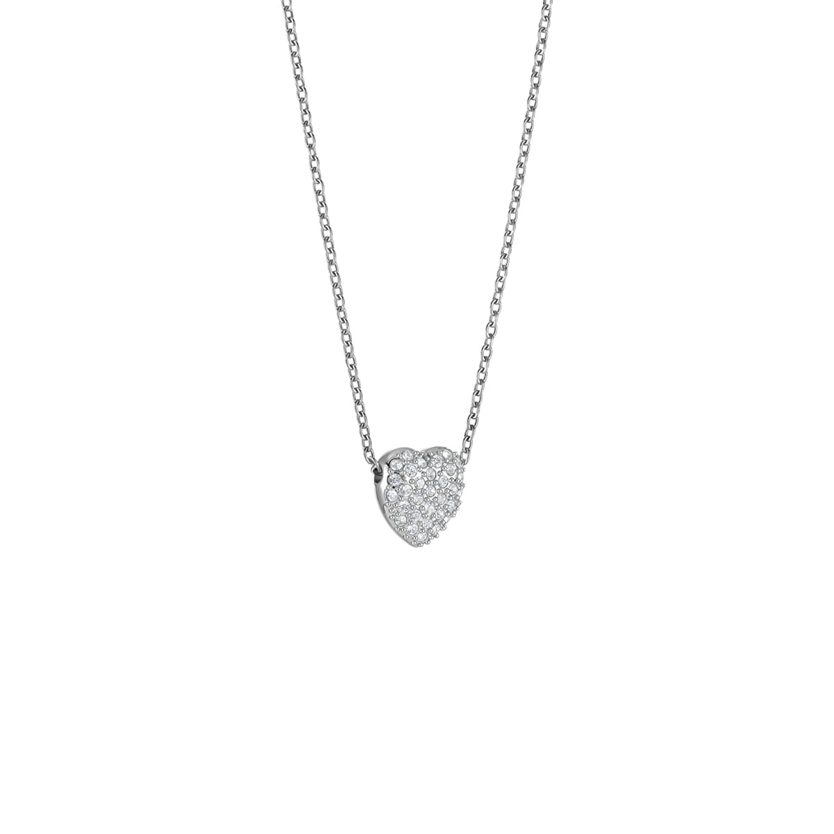 This delicate jewellery set of necklace and stud earrings combines minimalist design with radiant sophistication. Both heart elements – on the fine chain and the studs – are set with brilliant pavé zirconia stones, reminiscent of ice crystals glittering under the Arctic sun. The cool silver-toned stainless steel adds a touch of refined elegance and highlights the pure beauty of the form.