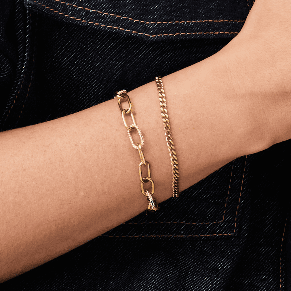 To find the right bracelet size, all you need is a piece of thread or dental floss or a piece of paper. Wrap it around your wrist and mark where it overlaps. Make sure that the measuring string is not too tight to give the bracelet some play. Measure the length afterwards. The measured millimetres reflect the wrist circumference.