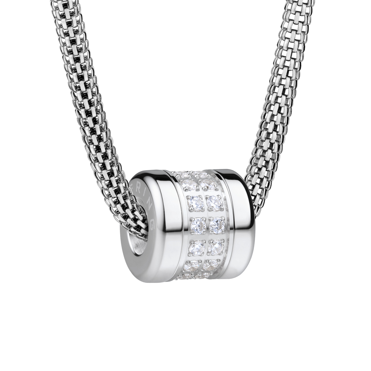This necklace blends timeless elegance with subtle sparkle. The central stainless steel-style pendant is adorned with rows of clear crystals, adding a touch of brilliance. The dense, textured chain enhances the modern appeal – ideal for everyday wear and special occasions alike.