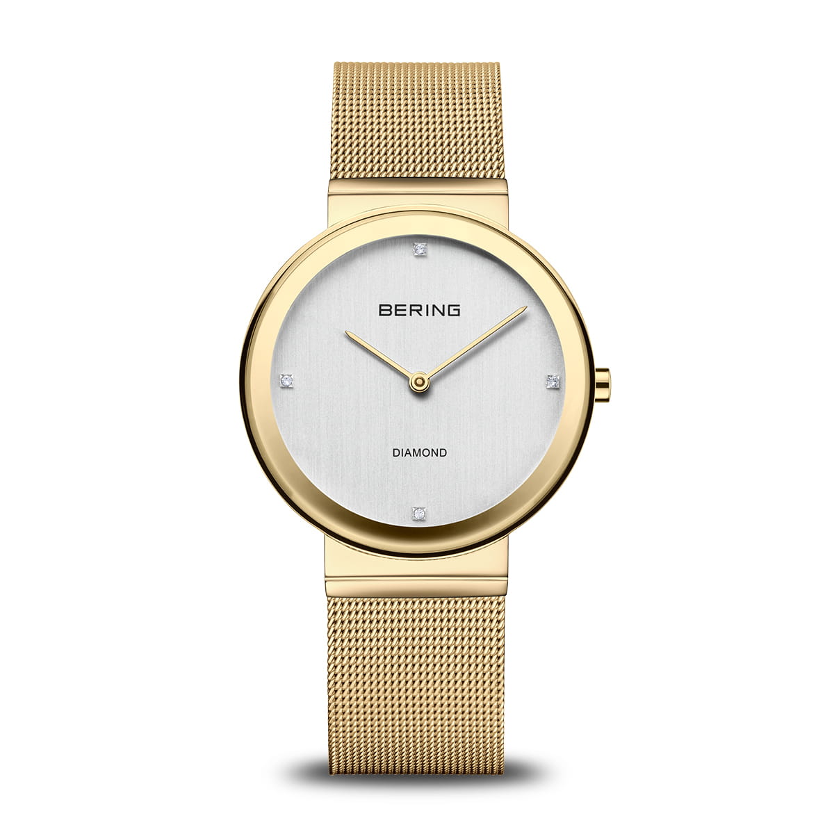 The BERING 10135-334 radiates timeless elegance with quiet confidence. Its all-gold design – from case to Milanese strap – is harmoniously balanced by the brushed silver dial. Four genuine diamonds add a subtle sparkle, bringing understated luxury to a clean, refined aesthetic.