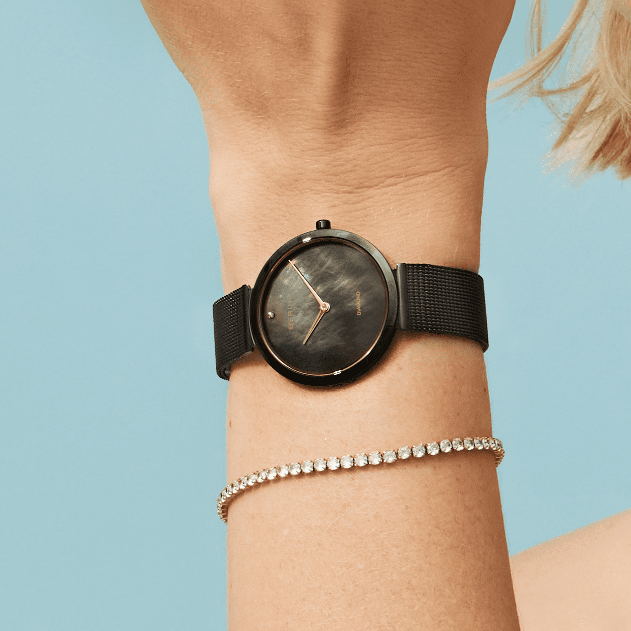 BERING`s milanaise bracelets are easily adjustable. Simply insert a small screwdriver or similar tool into the buckle as shown in the picture. Lift up the clasp and bring it into the desired position. Make sure that the buckle snaps into one of the notches on the back of the strap. The bracelet can be fully customised to your needs by a watchmaker.