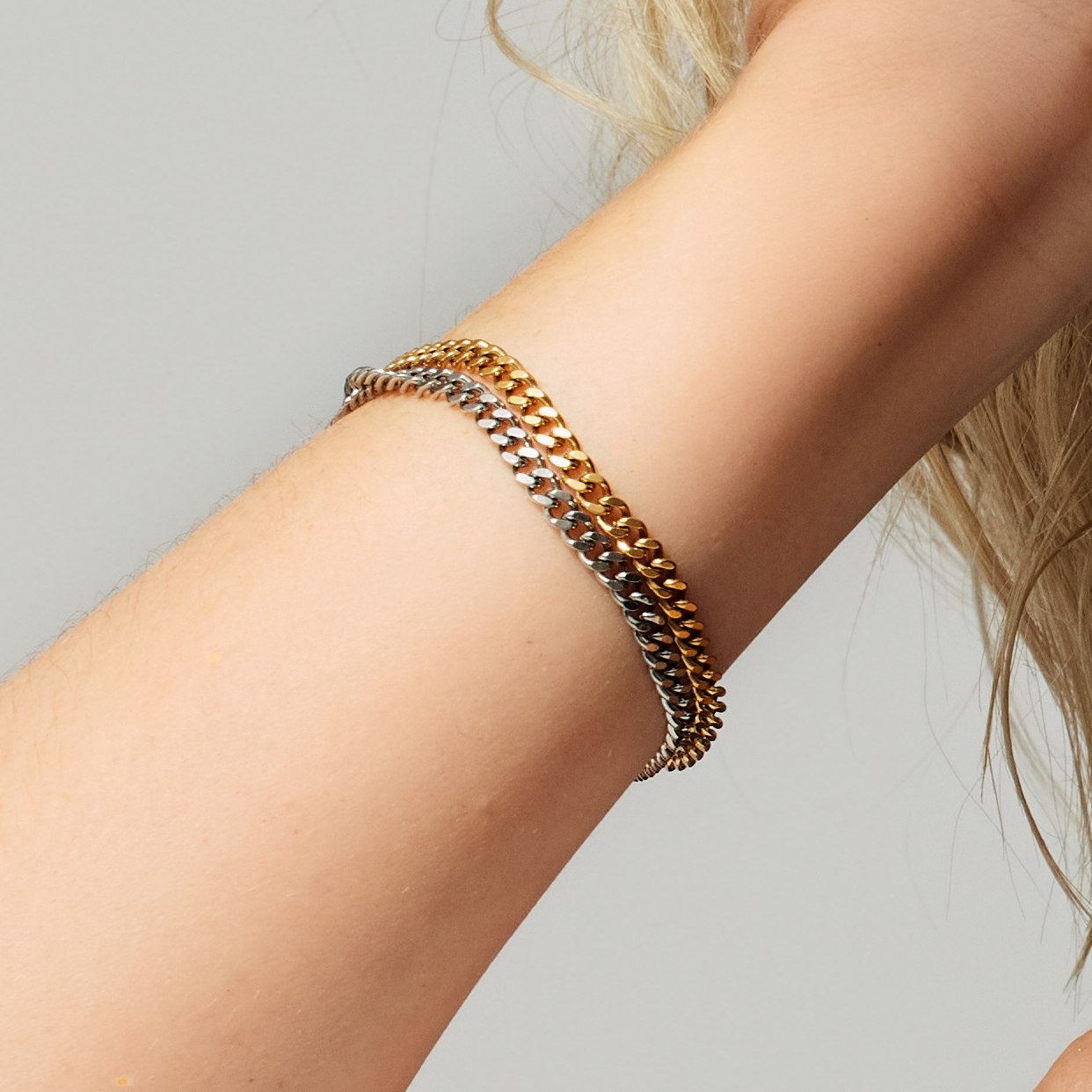 El modelo 649-17-X0 de la colección Arctic Symphony presenta una clásica cadena trenzada en acero inoxidable plateado brillante. Su estructura ligera y delicada se adapta cómodamente a la muñeca, ideal para llevar solo o combinado con otros accesorios.