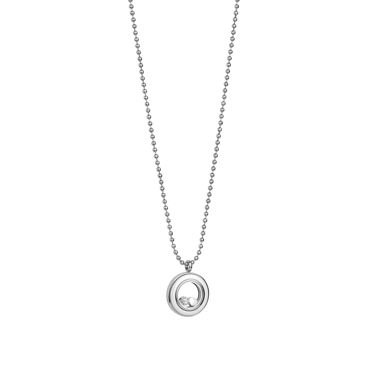 From BERING’s Arctic Symphony Collection, this necklace combines clean lines with deep symbolism. A polished stainless steel pendant forms a perfect circle, containing two free-floating elements – a clear crystal and a smooth silver bead – that move gently with you, representing balance, transformation, and harmony.